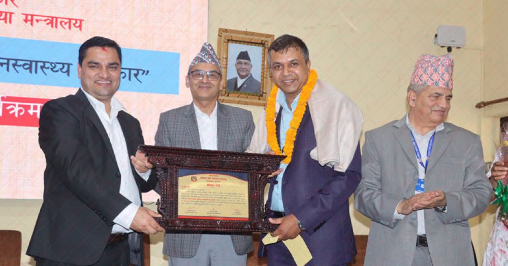 विश्व सुर्तीजन्य पदार्थ रहित दिवसको अवसर पारेर स्वास्थ्य तथा जनसंख्या मन्त्रालयले शनिबार टेकुमा आयोजना गरेको विशेष समारोहमा स्वास्थ्य मन्त्री प्रदीप पौडेल, स्वास्थ्य सचिव डा विकास देवकोटा, स्वास्थ्य सेवा विभागका महानिर्देशक डा टंकप्रसाद बाराकोटी लगायतले न्यौपाने सहित सात जनालाई पुरस्कार प्रदान गरेका हुन् । यो पुरस्कारको राशी जनही ५० हजार रुपैयाँ र प्रमाणपत्र रहेको छ । यो पुरस्कारको राशी जनही ५० हजार रुपैयाँ र प्रमाणपत्र रहेको छ । यो पुरस्कारको राशी जनही ५० हजार रुपैयाँ र प्रमाणपत्र रहेको छ ।
